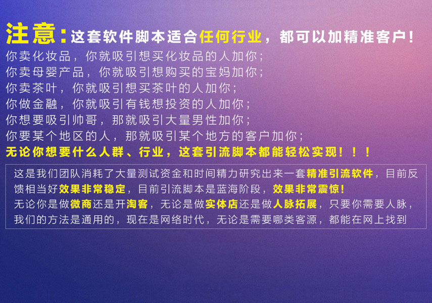 4.帮助新手远程调试,直至脚本正常运行。卖的不仅仅是引流软件,更是服务;