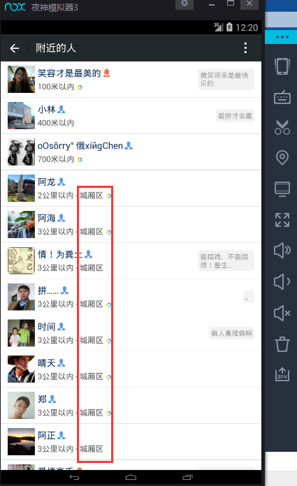 说下我的测试环境,共试3台电脑,两台 win7一台win10,夜神是目前最新的2.0版,测试地点 湖北 咸宁, 测试软件:微信和夜神自带定位软件。
