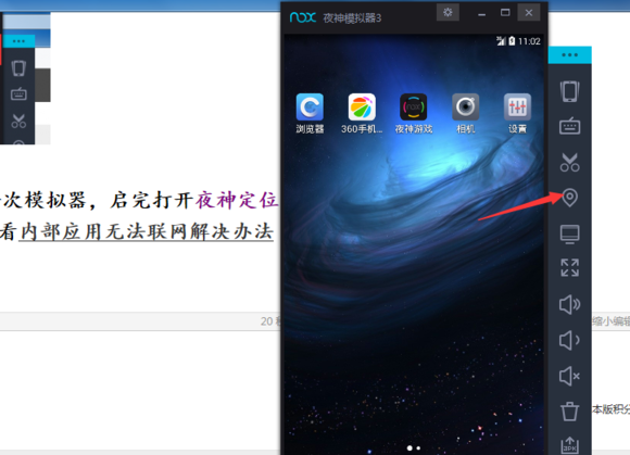 1和2设置完,请重启一次模拟器,启完打开夜神定位,记得定完,点应用按钮。